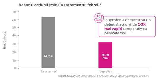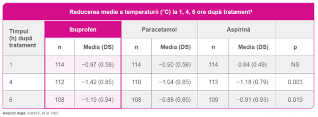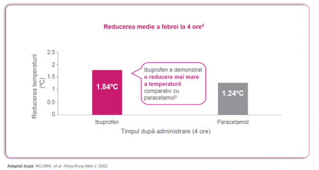 Ibuprofen reduce semnificativ febra comparativ cu paracetamol și aspirina4