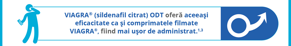 VIAGRA® 50 mg, comprimate orodispersabile (ODT) reprezintă o abordare terapeutică inovatoare pentru tratarea disfuncției erectile (DE).1,2