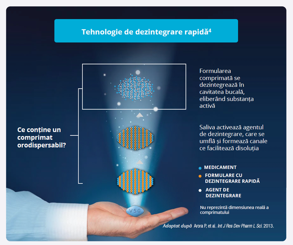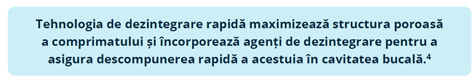 - se dizolvă pe limbă înainte de înghițire, cu sau fără aport de apă1